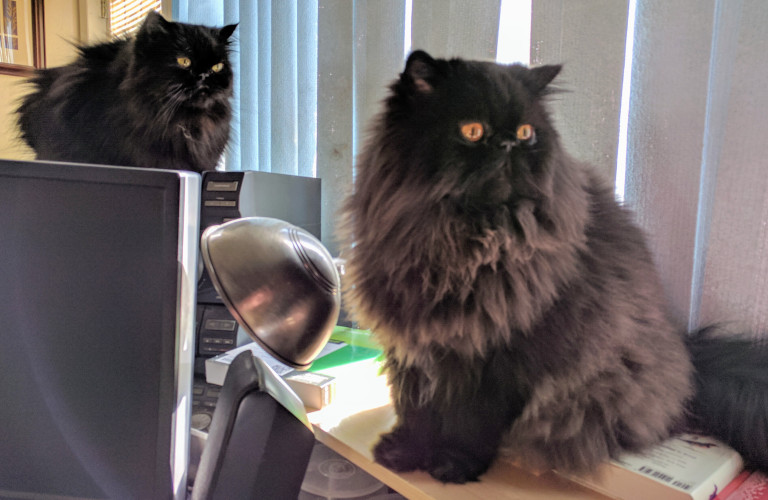 Yeah, I have to agree! Too bad there is my usual clutter in the photo. It distracts a bit from the kitty boys!